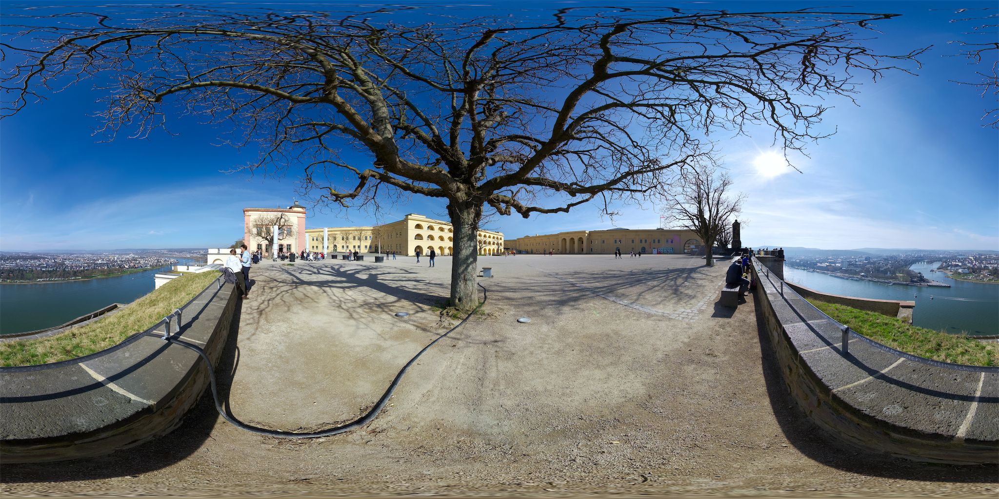 Man hat hier eine sehr schöne Aussicht auf das Deutsche Eck. Aufnahme bei bestem Wetter von der Aussichtsterrasse im Frühjahr 2024 mit Sony A7C.