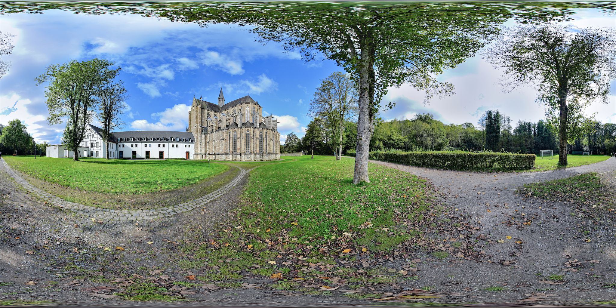 Das "doppelte Birthchen" vor der Klosterkirche St. Mariä Himmelfahrt in Gräfrath. Ein kleiner, hübscher Ort im Bergischen Land mit nettem und leckerem Restaurant/Café im Ortskern. Von uns mit dem Fahrrad erreichbar mit ca. 20km Entfernung. Leider hatte ich die Belichtungseinstellung aus Versehen verstellt (geht leider sehr leicht bei der Sony A7CR), so dass einige Aufnahmen überbelichtet waren. Ich habe versucht zu retten, was zu retten war. Das Foto wurde im Klosterhof oberhalb des Ortskerns gemacht. (Wikipedia)